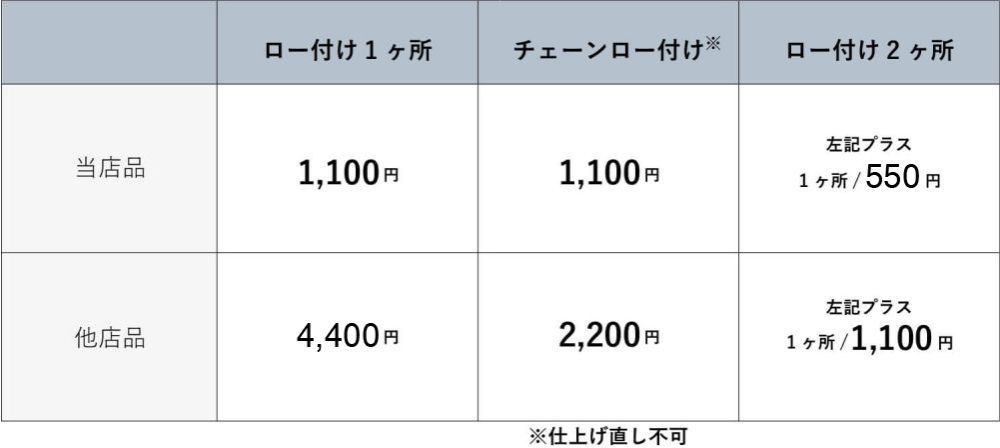 実際の商品をスタッフが確認し、作業可能なものであれば、工房での作業となり「加工料」と作業にかかった「金属代」が発生いたします。