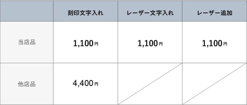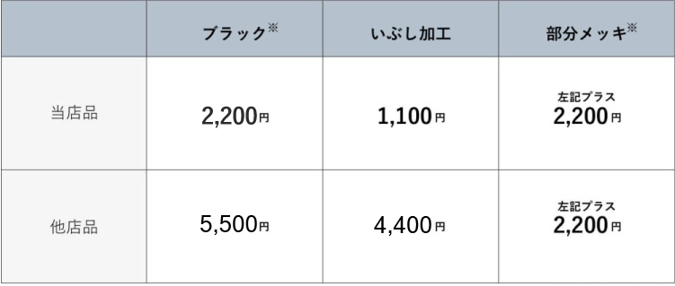 実際の商品をスタッフが確認し、工房での作業が必要なデザインの場合は、別途「加工料」+「金属代」として、2,500円の料金が発生いたします。