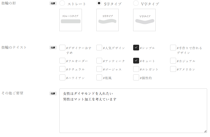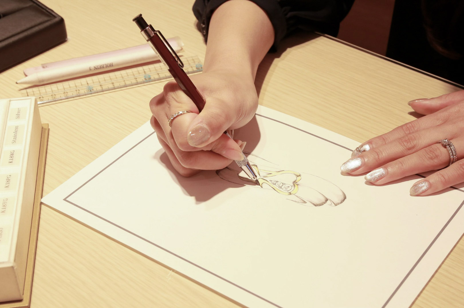 資料請求ページにてご希望のデザインをご入力いただけましたら、カタログと共にお2人だけの特別なデザインを描いてお届けいたします。