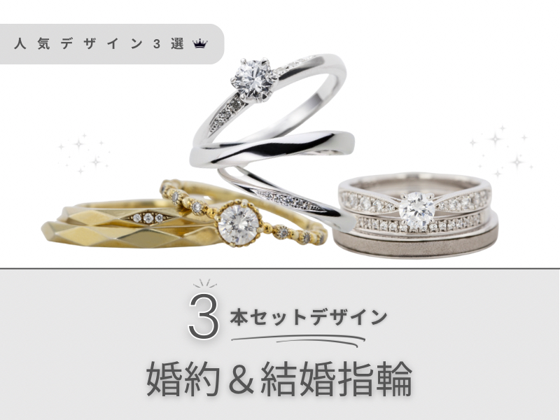 3本でさらに輝く!結婚指輪&婚約指輪3本セット【人気デザイン3選】