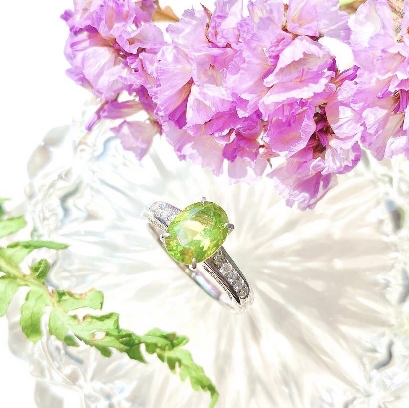 爽やかな若草色のペリドットはポジティブな象徴や幸福を意味するパワーストーン。