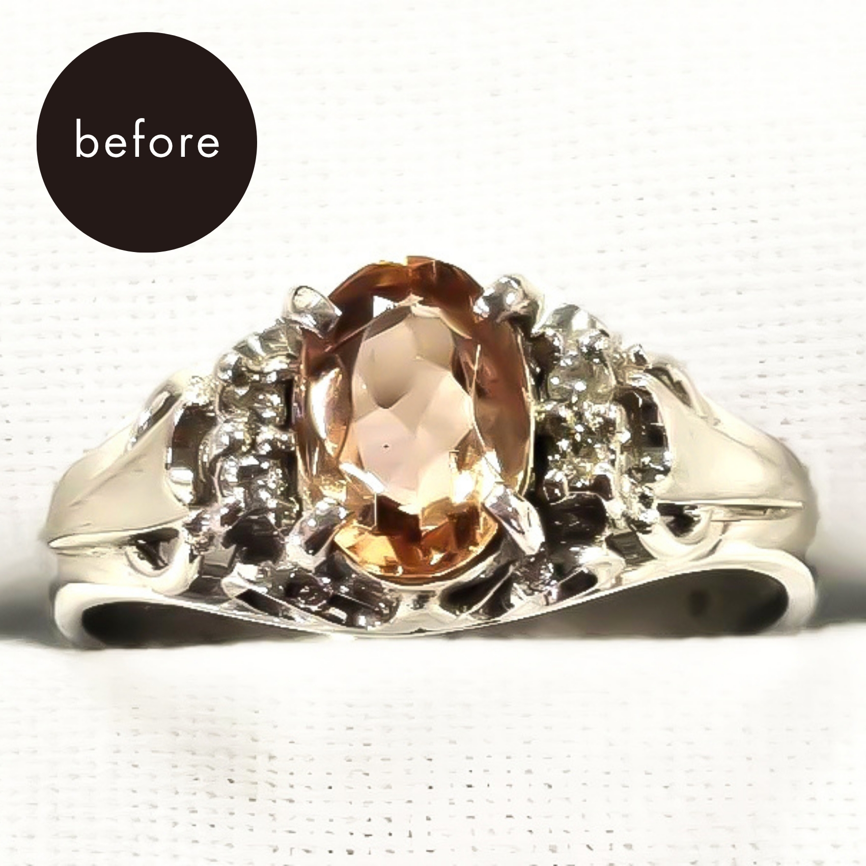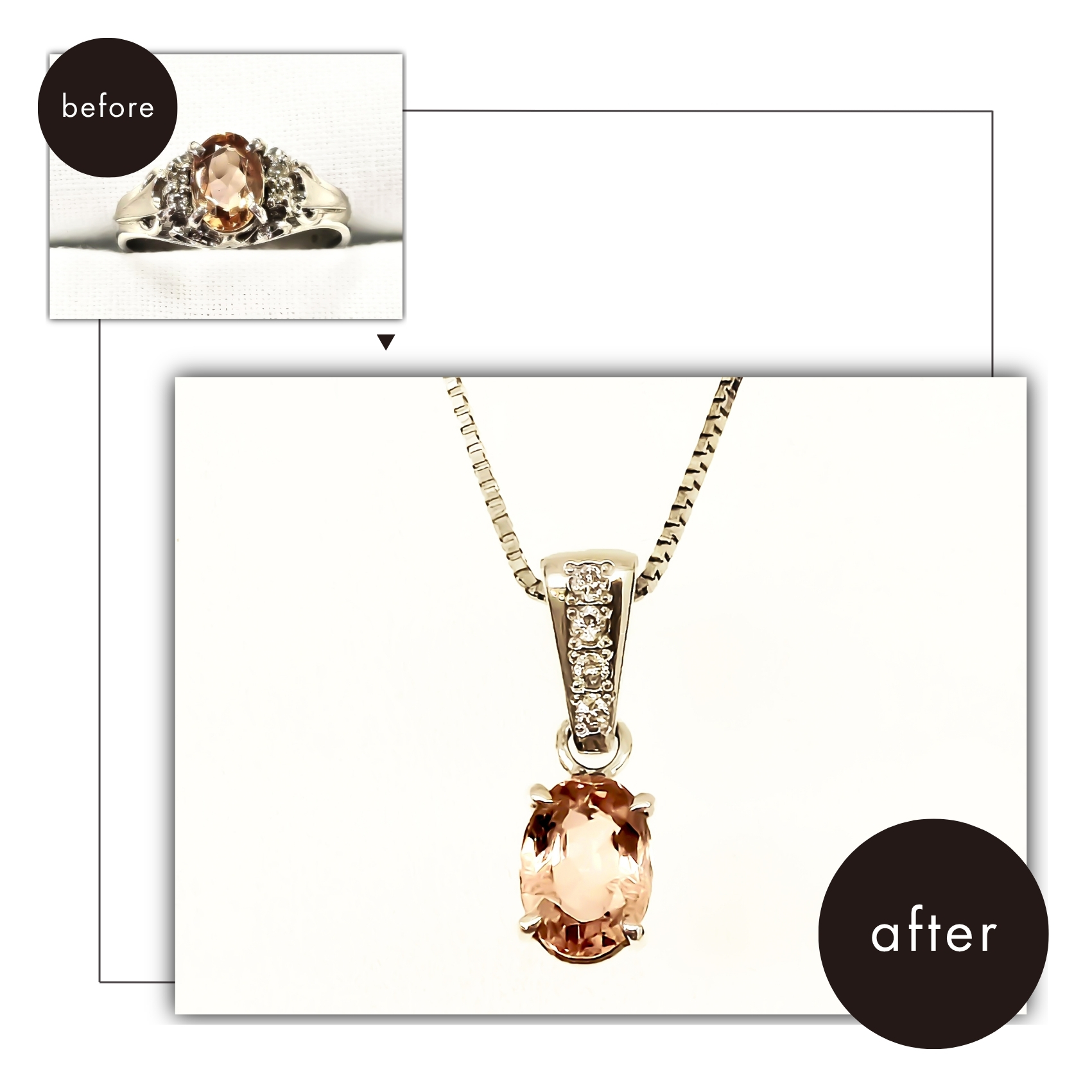 ご自身で購入したリングをリフォームしたいとご相談で当店のミニイベントにご来店されました。誕生石が輝く華やかなリングを普段使いできるようにネックレスへ変えたいとのご要望でした。 「人生で一度は自分の誕生石を身に着けたい。だけど、みんなが知っているブルートパーズではない宝石が欲しい。」と思い、石にこだわり、トパーズの中でも最高級とされるカラーのインペリアルトパーズを購入したそうです。 オレンジとブラウンのカラーがきれいに輝くインペリアルトパーズと、上品で落ち着いた輝きのあるプラチナの組み合わせ。 インペリアルトパーズの両サイドに留まっていたダイヤモンドも使用し、素敵なネックレスに生まれ変わりました。