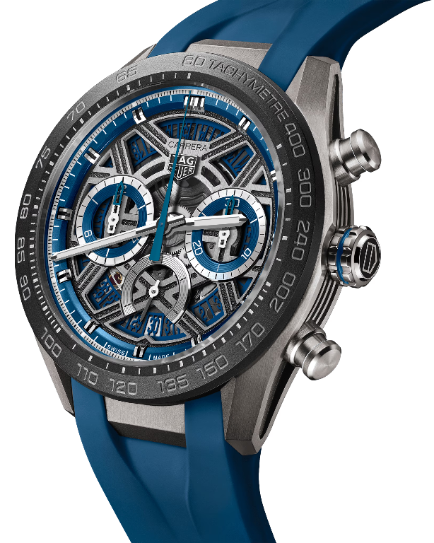 ブルーが際立つスケルトンダイヤルとチタンケースの存在感